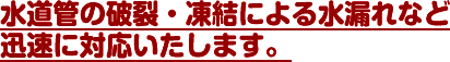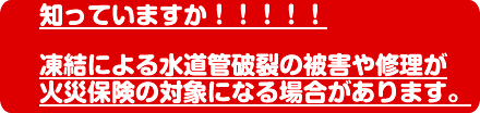 水道管の破裂による被害とは・・・。 ※給排水管が凍結により破損し天井や壁に水漏れが発生した。 ※凍結により破損した給排水設備を修理した。