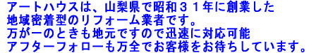 アートハウス 株式会社 仙洞田板金工業 山梨県山梨市正徳寺693-1 TEL 0553-20-7177 FAX 0553-22-9379 E-mailにてお問合せ ISO9001:2015 認証登録